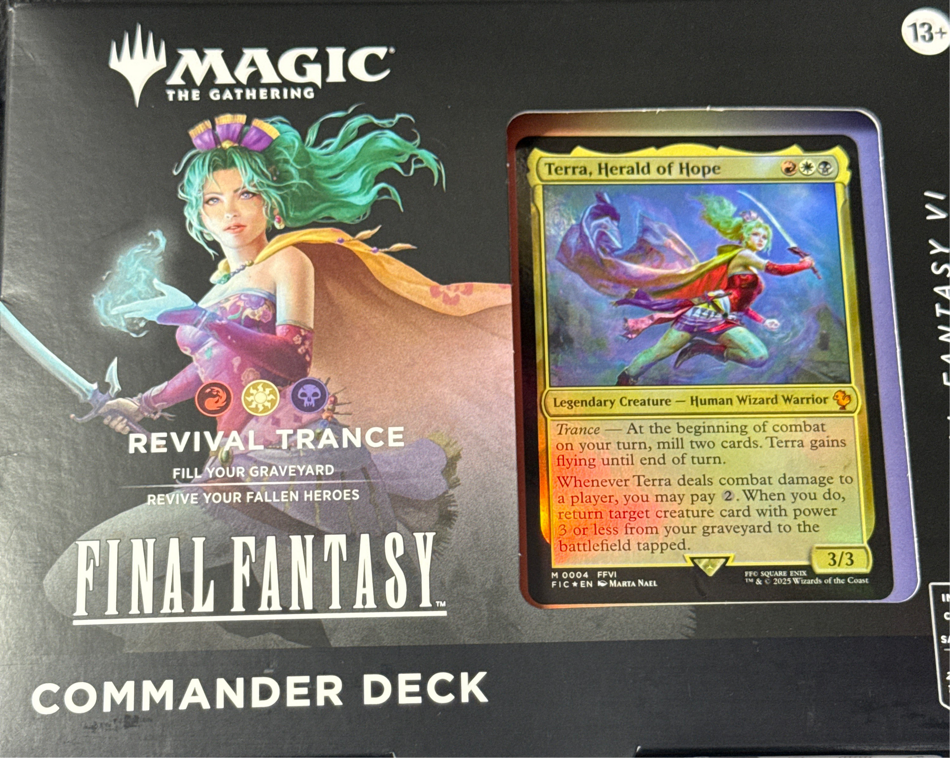 The entire FINAL FANTASY saga is here! Your players will step into the worlds of the beloved FINAL FANTASY RPG series' sixteen mainline games with a Commander deck mainly featuring cards from FINAL FANTASY VI, FINAL FANTASY VII, FINAL FANTASY X, and FINAL FANTASY XIV. They'll cast powerful spells, call upon classic summons, and even visit their favorite locations on the back of a Chocobo. Countless elements from the games are here for players to weave together their own stories.